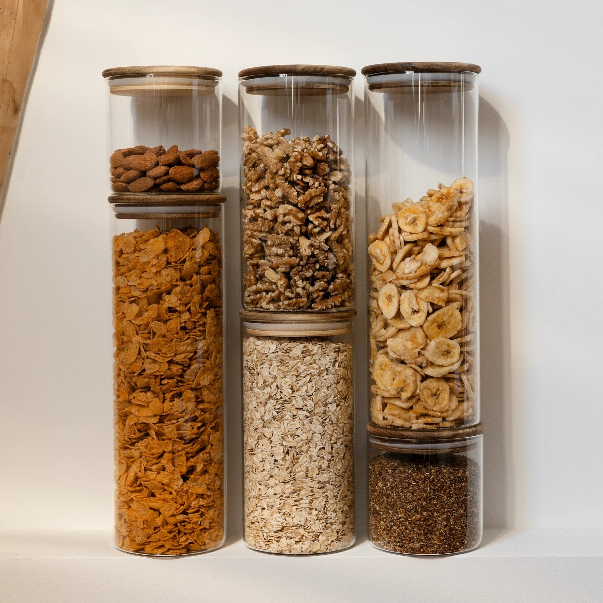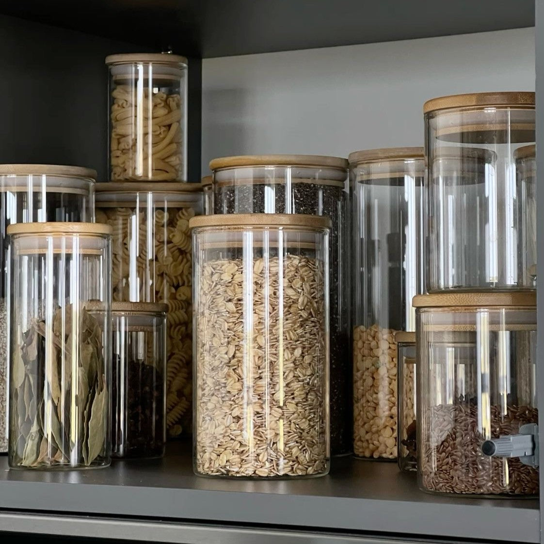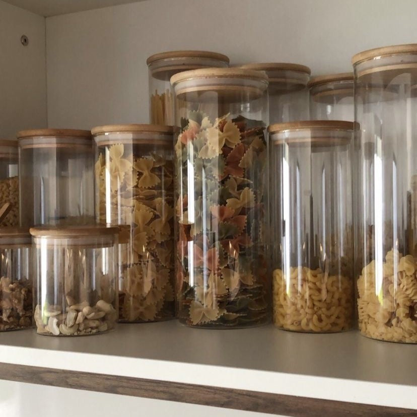 Recipiente de almacenamiento con tapa de bambú, ideal para organizar tu cocina con un toque natural & armonioso.