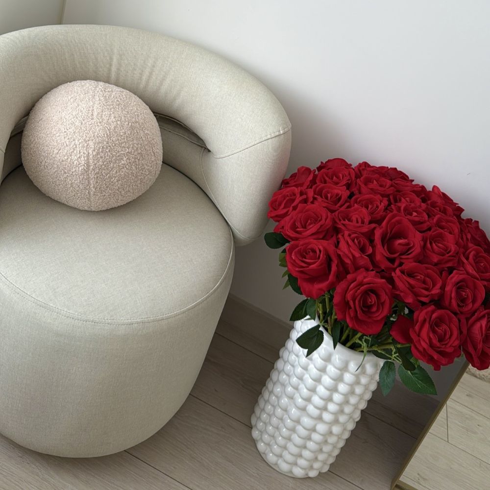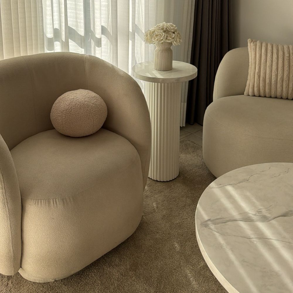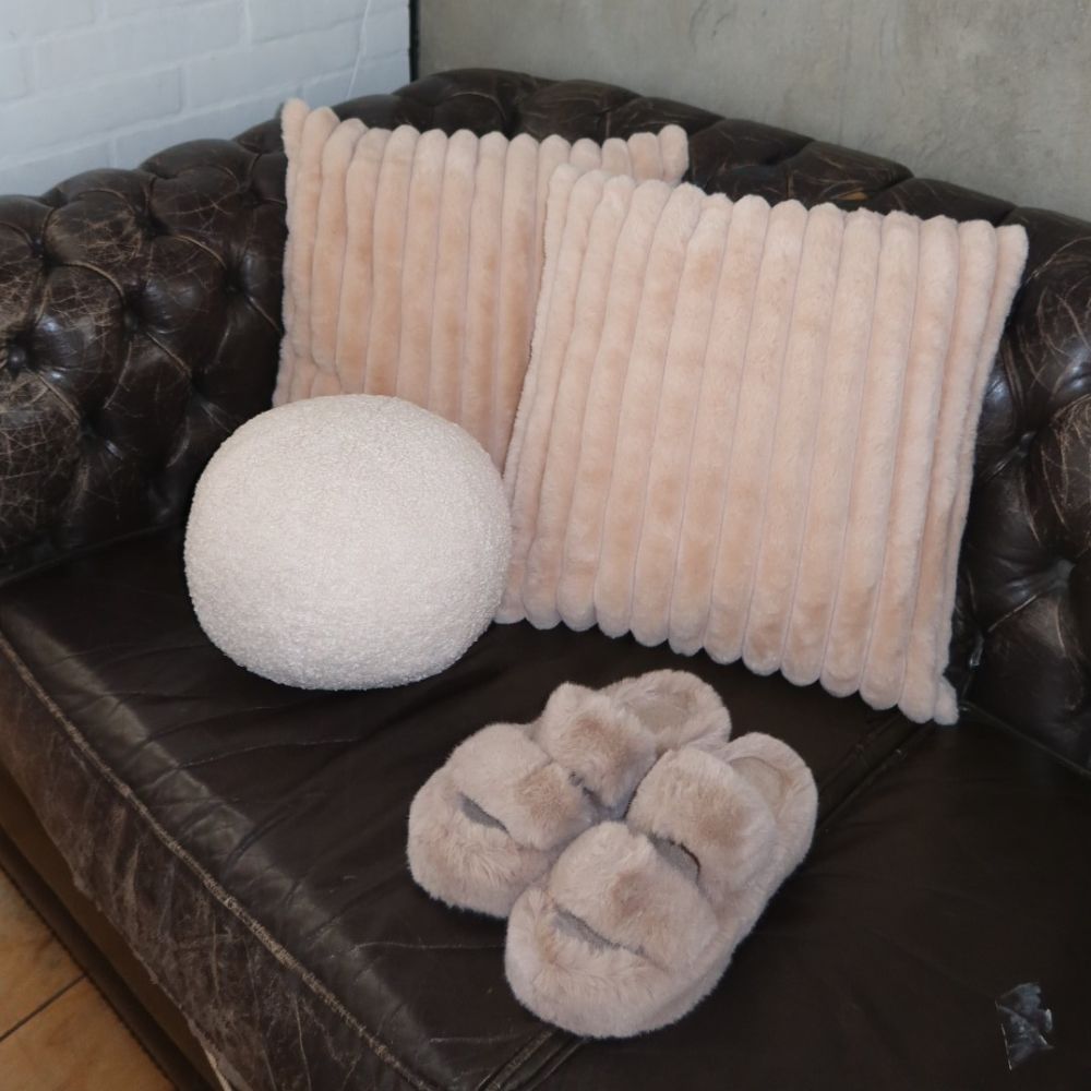 Cojín redondo en felpa, suave al tacto & perfecto para darle un toque acogedor & elegante a cualquier espacio. Su textura cálida & su forma armoniosa lo hacen ideal para complementar salas, cuartos o rincones decorativos.