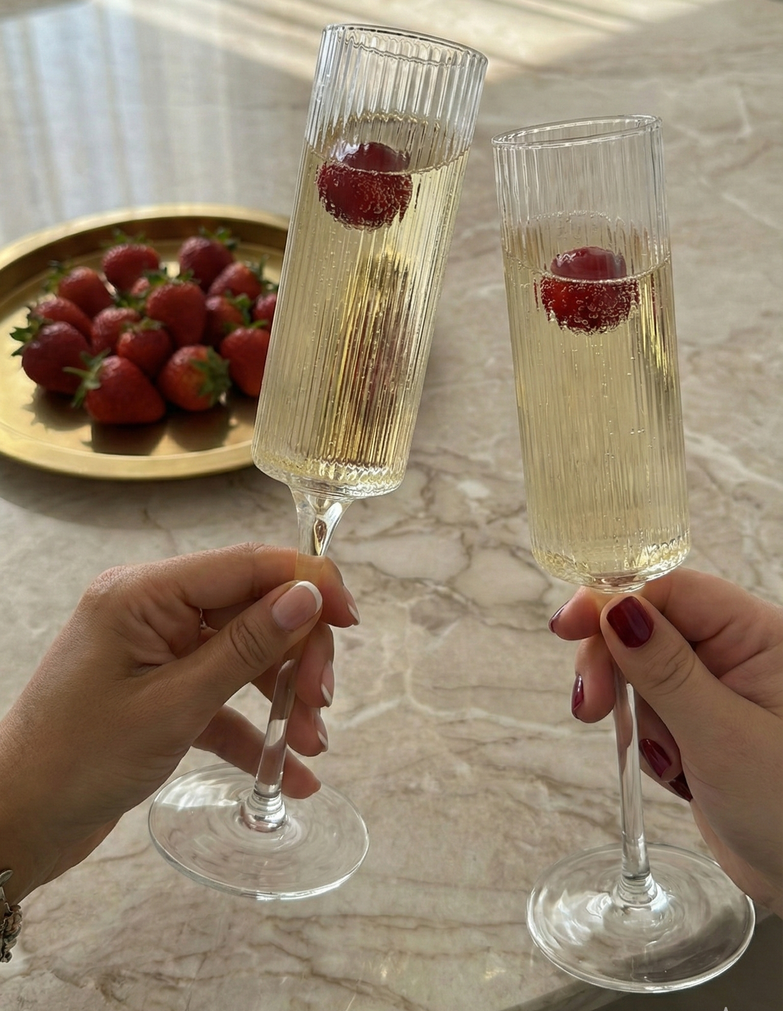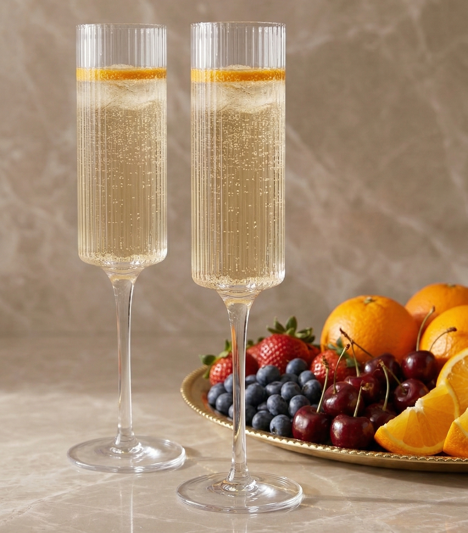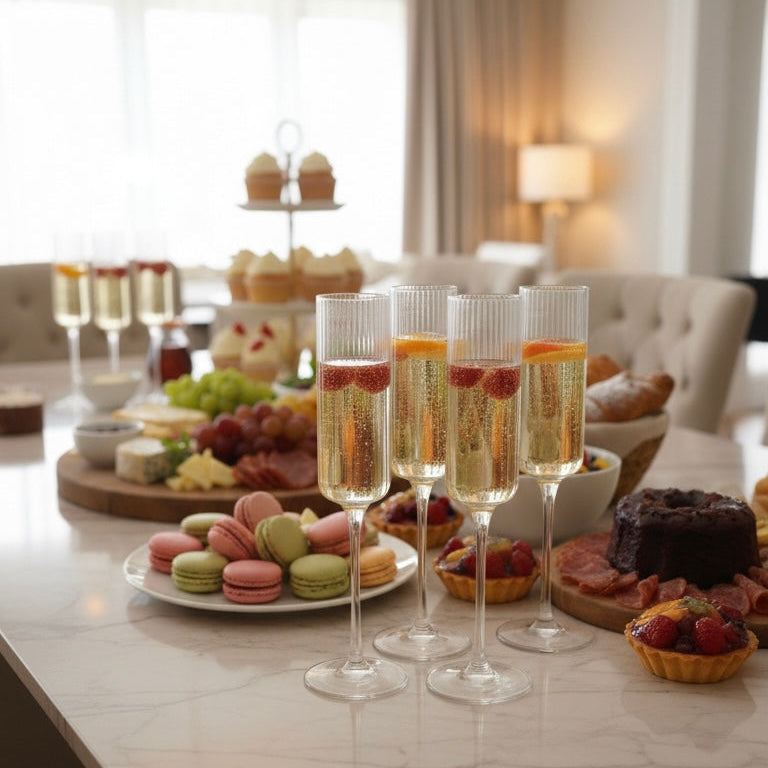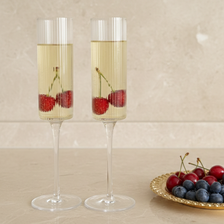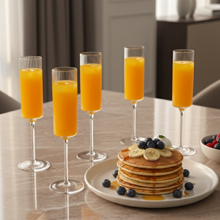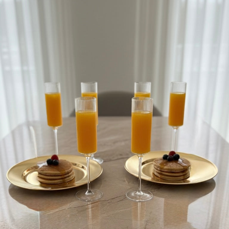 Diseñada para brindar con estilo, la copa mimosa o de champagne combina elegancia & sencillez. Su forma estilizada mantiene las burbujas & resalta el brillo del espumante. Ideal para celebrar momentos especiales, brunch o desayuno.