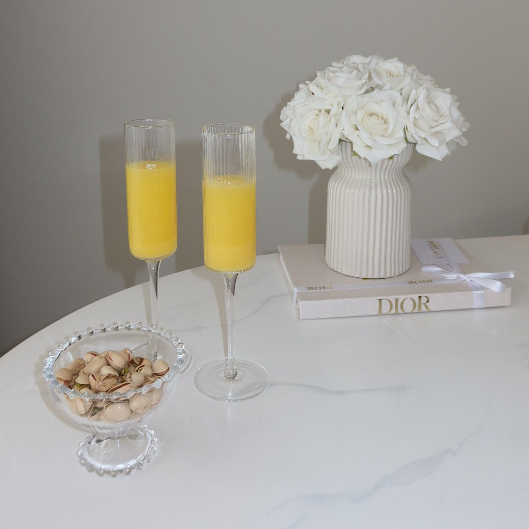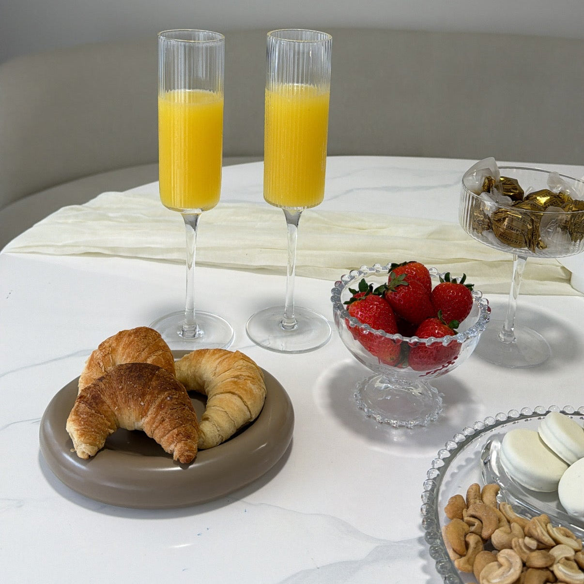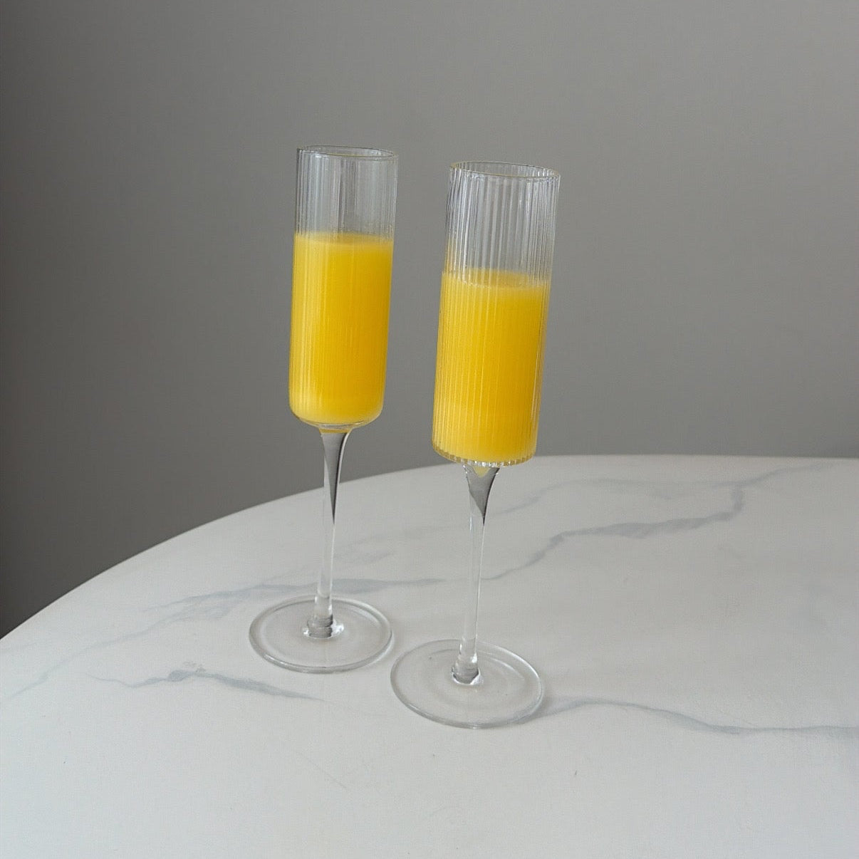 Diseñada para brindar con estilo, la copa mimosa o de champagne combina elegancia & sencillez. Su forma estilizada mantiene las burbujas & resalta el brillo del espumante. Ideal para celebrar momentos especiales, brunch o desayuno.