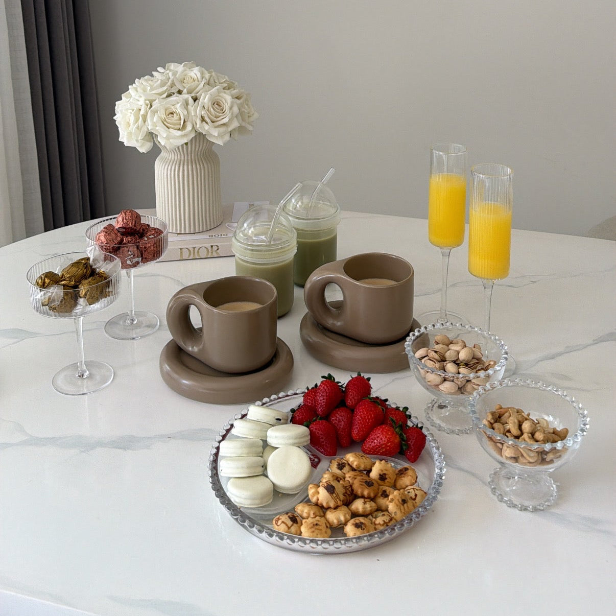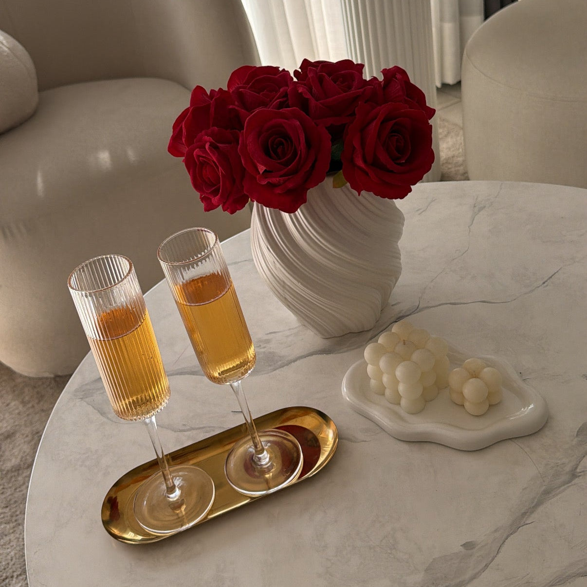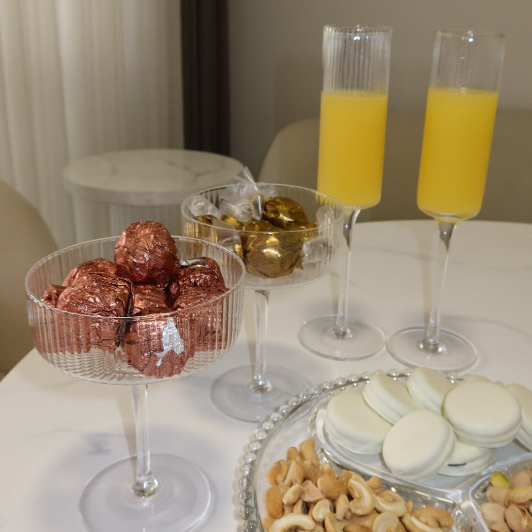 Diseñada para brindar con estilo, la copa mimosa o de champagne combina elegancia & sencillez. Su forma estilizada mantiene las burbujas & resalta el brillo del espumante. Ideal para celebrar momentos especiales, brunch o desayuno.
