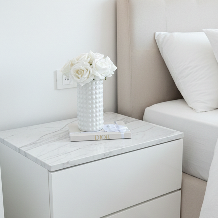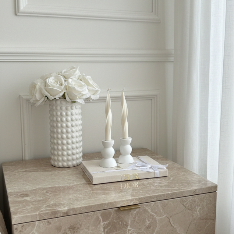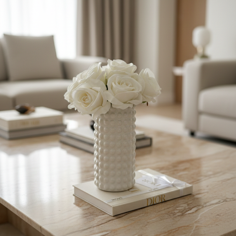 Jarrón de cerámica de diseño texturizado de relieves circulares, que aporta profundidad & carácter contemporáneo a cualquier espacio. Su acabado en blanco brillante refleja la luz de forma sutil, convirtiéndolo en una pieza versátil & atemporal que combina fácilmente con distintos estilos de decoración.