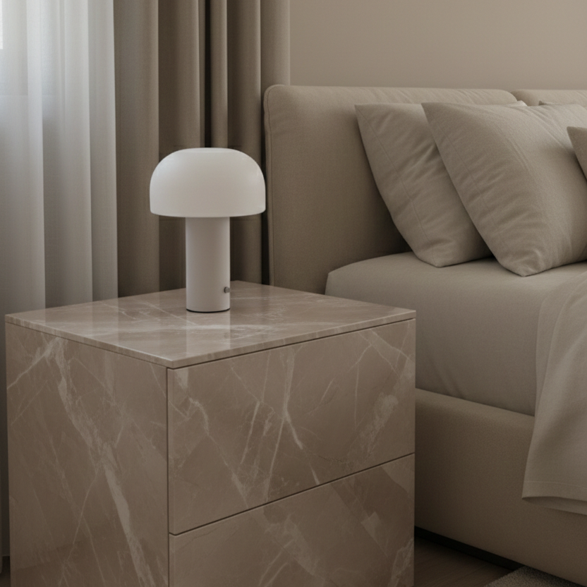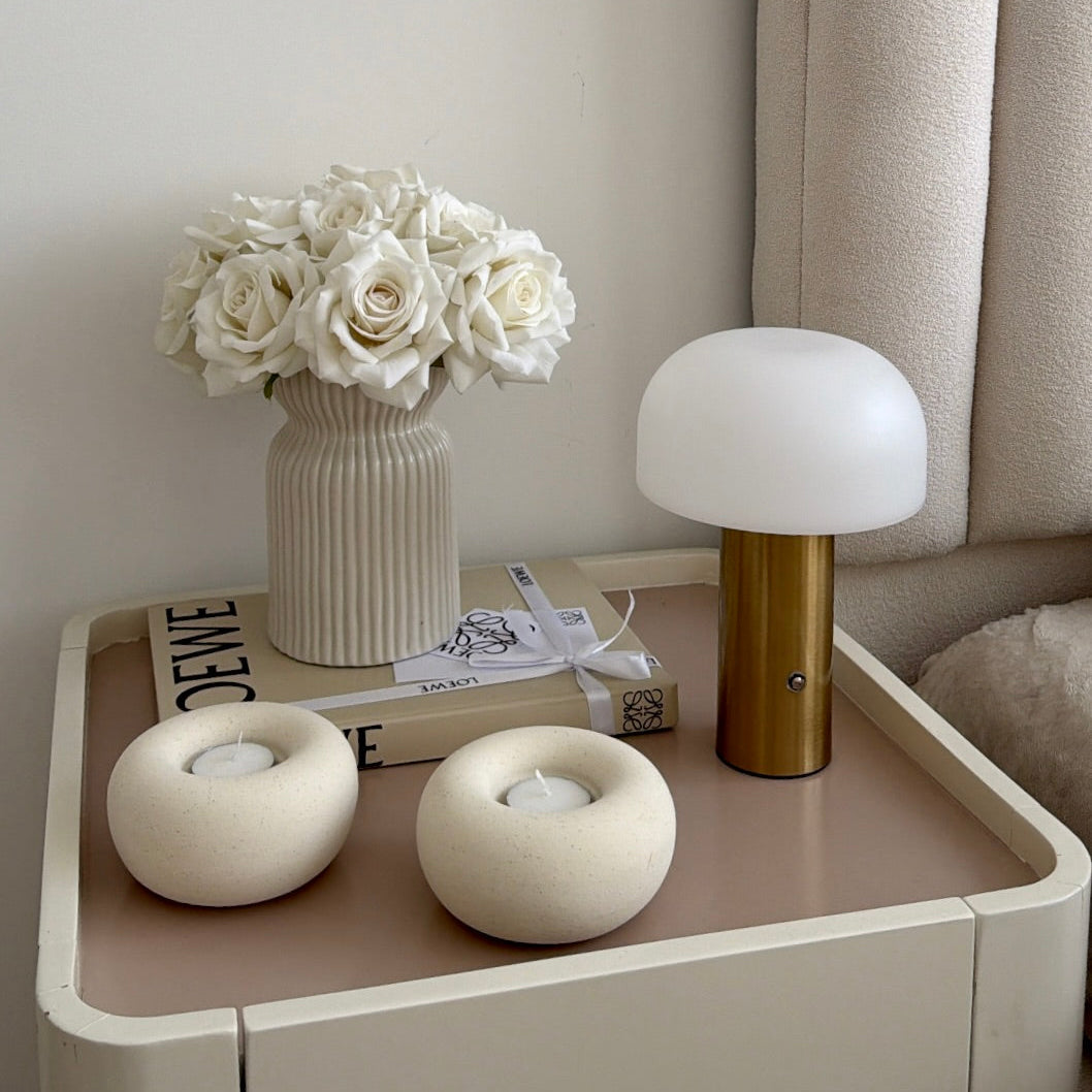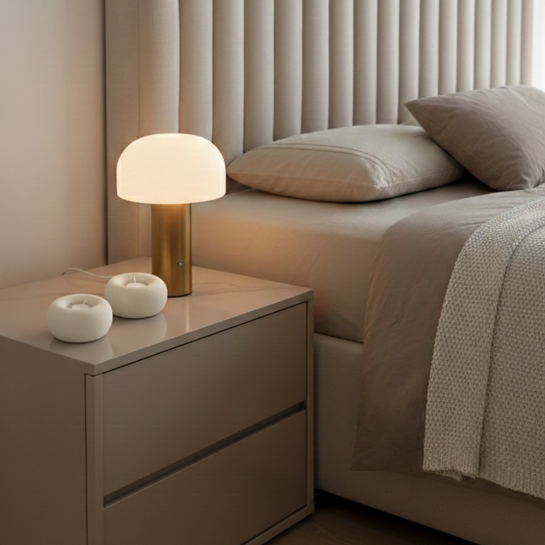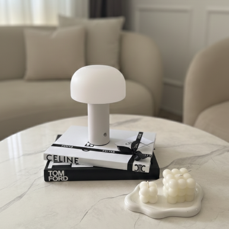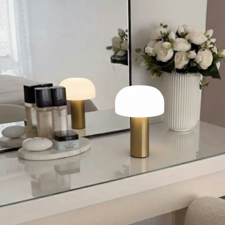 Lampara de diseño estético & con forma de hongo, pensada para aportar luz suave & presencia sin exceso. Puedes cambiar la iluminación según tu estado de animo o mood: puedes regularla & pasar de luz fría a cálida.