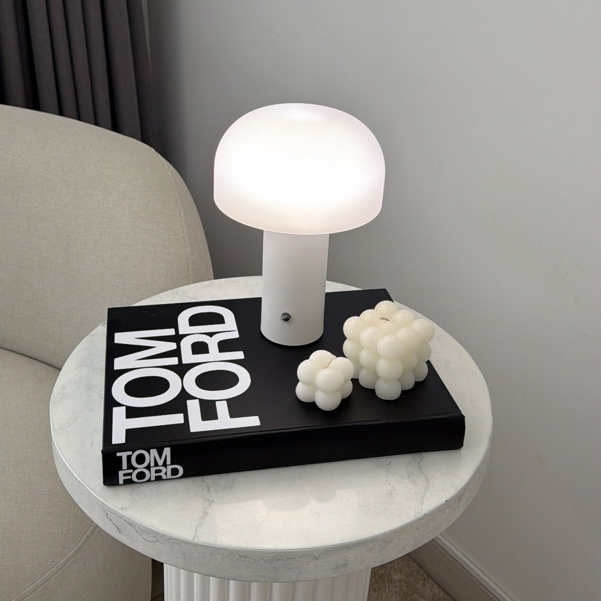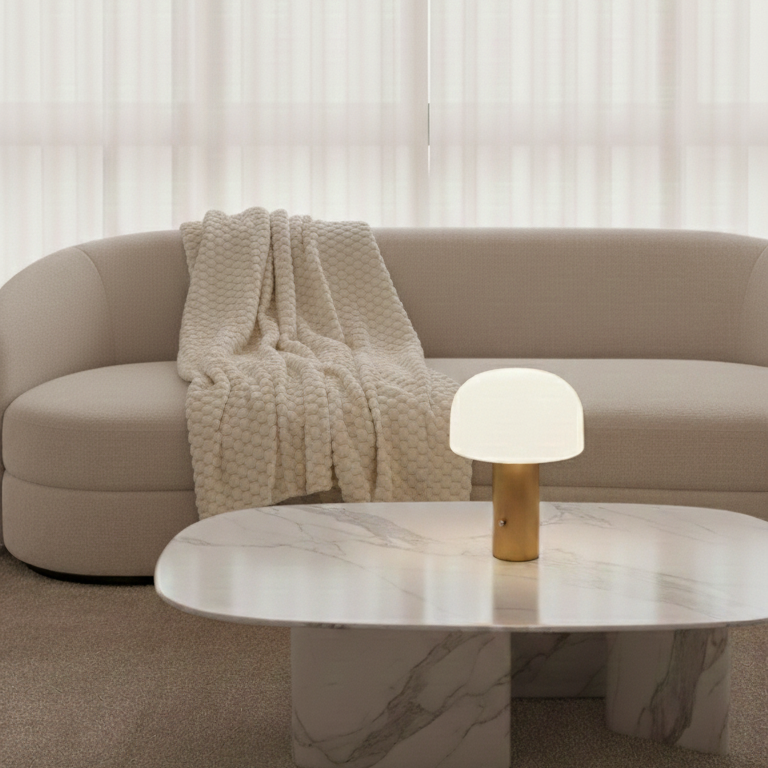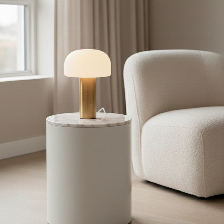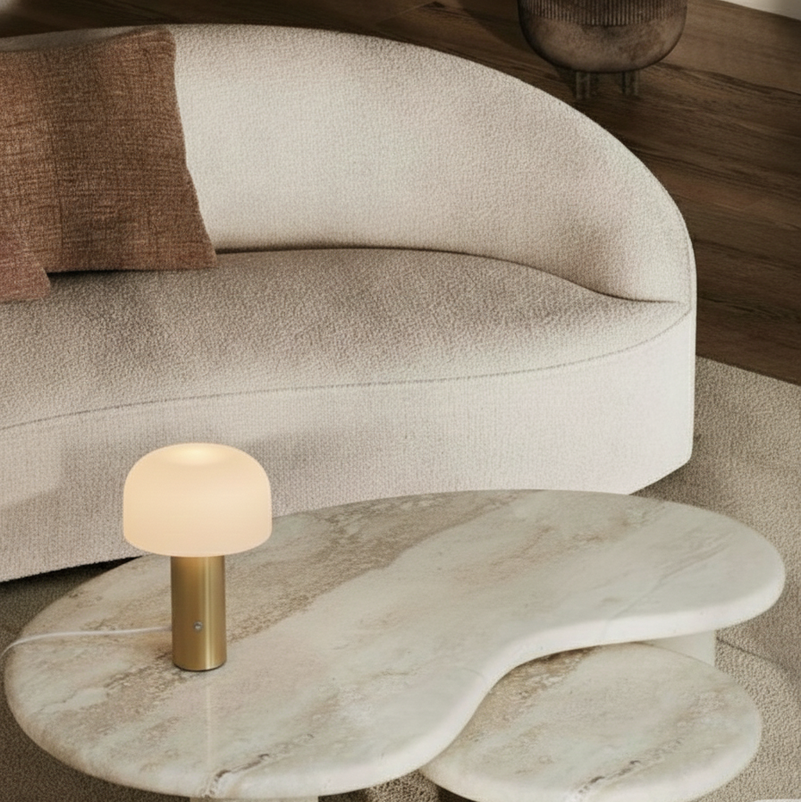 Lampara de diseño estético & con forma de hongo, pensada para aportar luz suave & presencia sin exceso. Puedes cambiar la iluminación según tu estado de animo o mood: puedes regularla & pasar de luz fría a cálida.