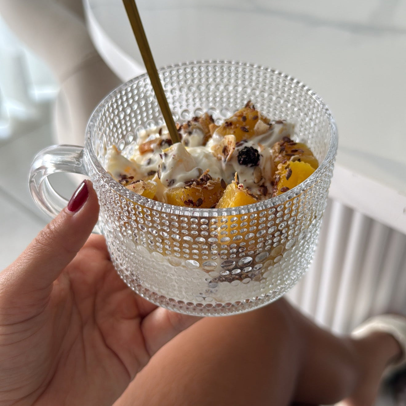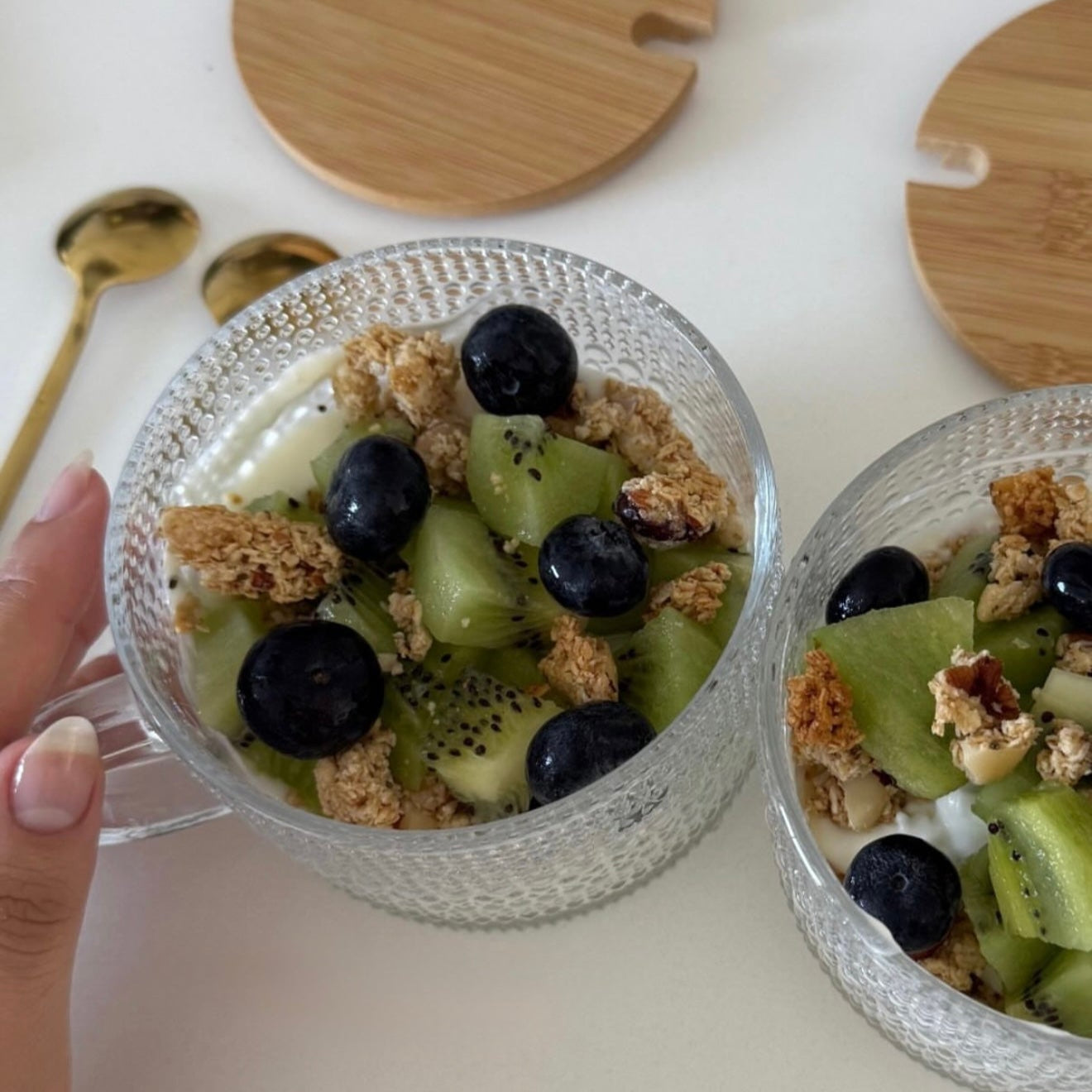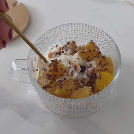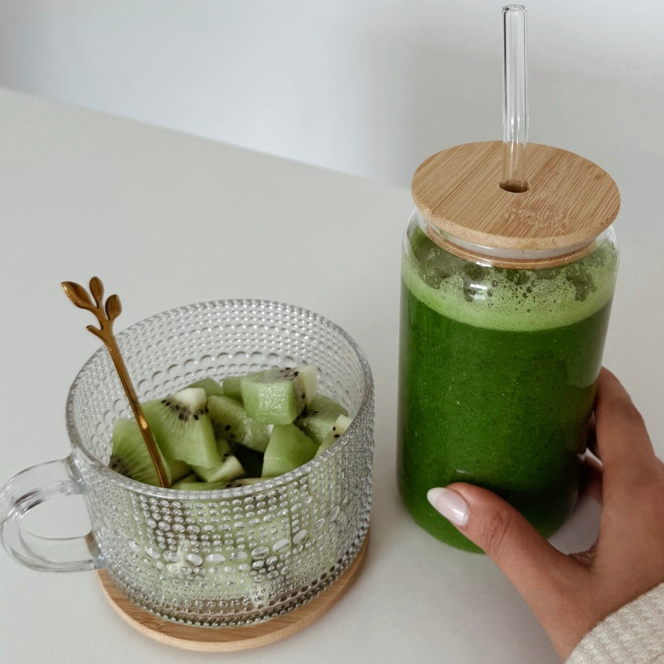 Incluye tapa de madera y cuchara de acero inoxidable.